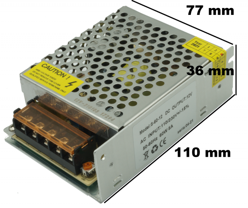 Komp. zasilania 12V DC IP20 5A 60W - Trafa, předřadníky