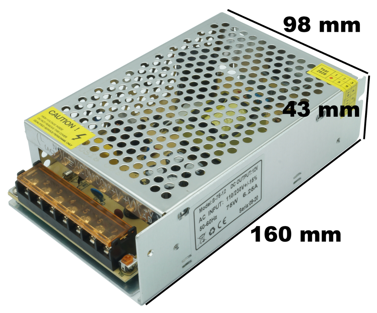 Komp. zasilania 12V DC IP20 6,25A 75W - Trafa, předřadníky