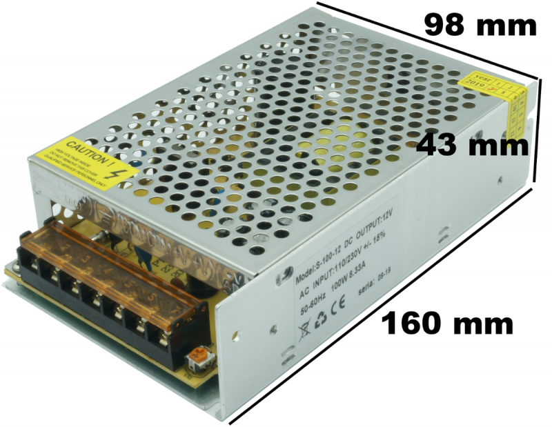Komp. zasilania 12V DC IP20 8,33A 100W - Trafa, předřadníky