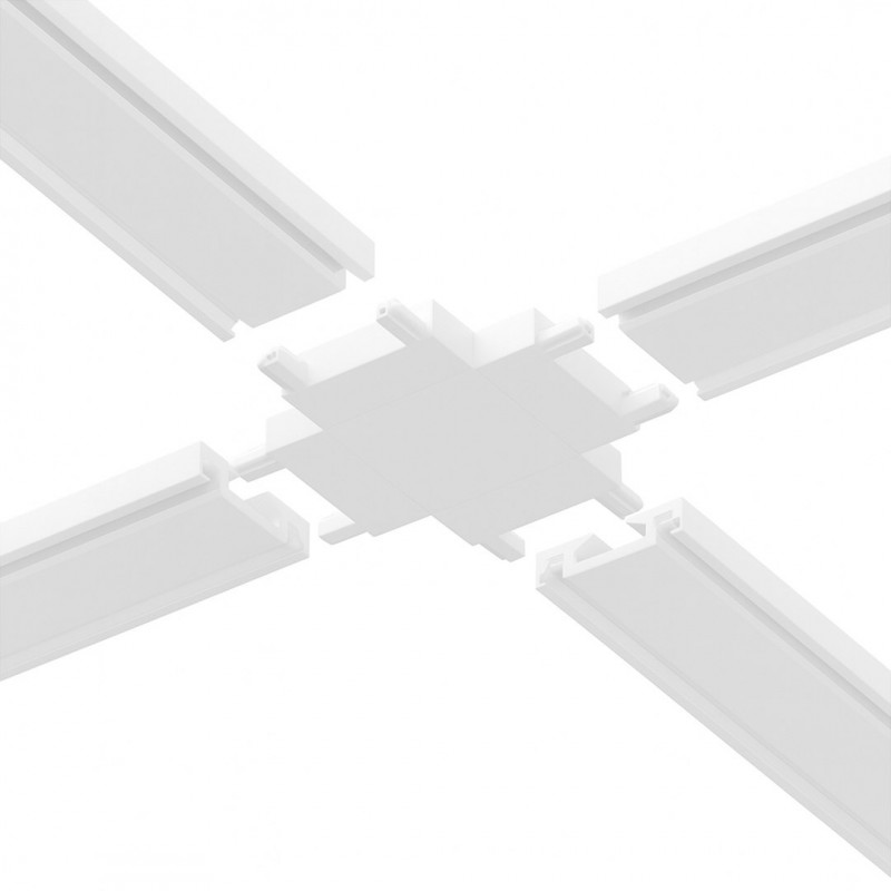 | Bílý kolejnicový konektor ve tvaru "+" nabízí možnost vedení instalace ve čtyřech směrech současně, což otevírá nové možnosti designu. Je vhodný pro rozsáhlé osvětlovací systémy, kde je požadováno optimální osvětlení více oblastí současně. | |