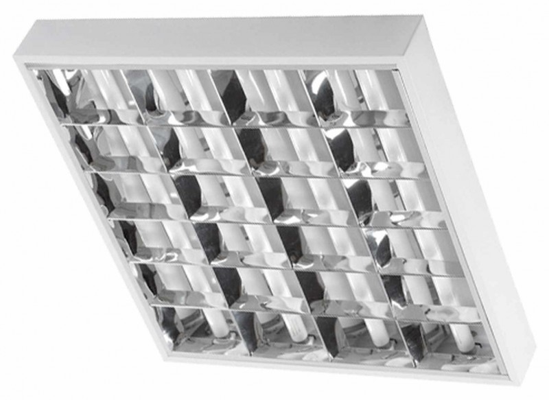 Přisazené svítidlo do vnitřních prostor připravené pro čtyři jednostranně napájené LED trubice délky 600 mm. Základna z bíle lakovaného ocelového plechu, reflektorová mřížka z poniklovaného plechu. Díky reflektorové mřížce dochází k rozložení světla a snížení oslnění. Svítidla jsou vhodná k osvětlení interiérů, kde je dostačující základní krytí IP20. Více než 2krát nižší spotřeba elektrické energie ve srovnání se zářivkovými svítidly s indukčním předřadníkem VVG. Konstrukce svítidla umožňuje snadnou, rychlou a nenákladnou výměnu LED trubic. Reflektor je v základně zajištěn pomocí čtyř pružinových závěsů. Svítidlo je dodáváno bez LED trubic. Způsob balení produktu po 2ks. |