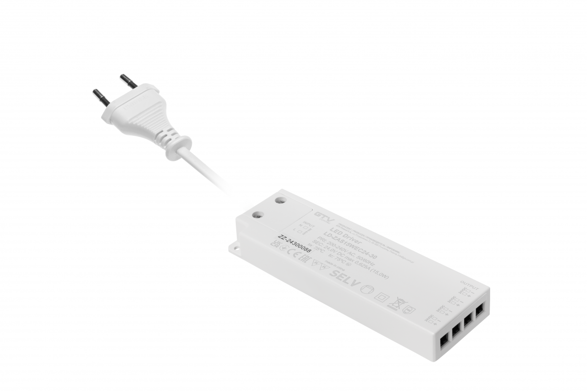 LED NAPÁJECÍ ZDROJ SLIM EASY CLICK 24V,15W, vstup 220-240VAC, IP20, rozměry 129x42x16 mm s mini zesilovačem a kabelem - Napájecí LED zdroje - LED trafo