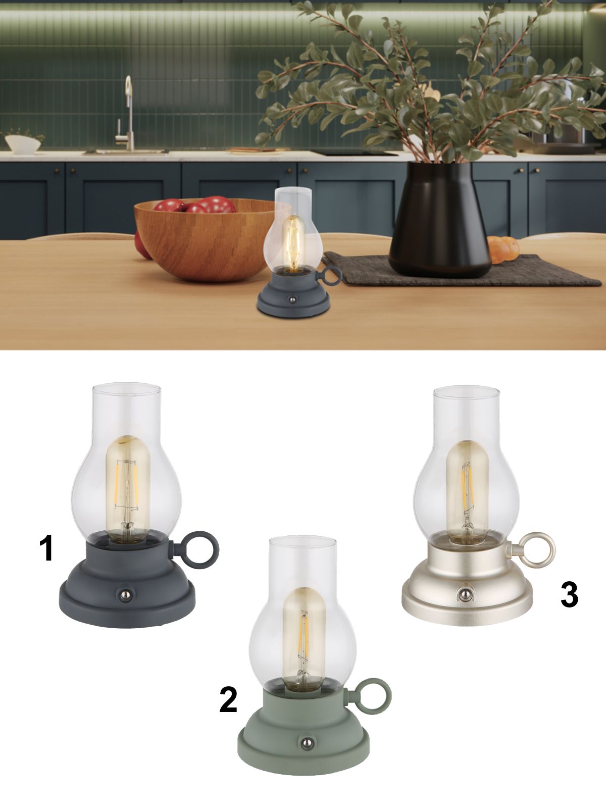 Dekorativní lampička vyrobená z plastu a skleněného stínidla. Lampička imituje starodávnou petrolejku. Má dotykový spínač. Dodává se s nabíjecím kabelem. Lampička svítí i v době nabíjení. Svítí teplým bílým světlem, což působí velmi příjemným dojmem. |