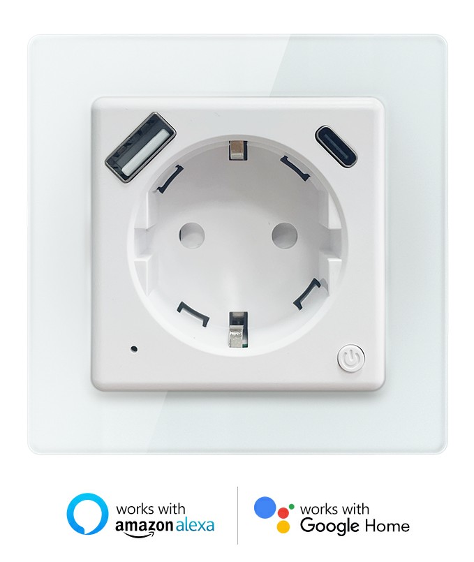 Smart vnitřní zásuvka Nexa bez kolíku, Immax NEO, typ F, 1xUSB, 1xUSB C , PD 20W, WiFi - Zásuvky
