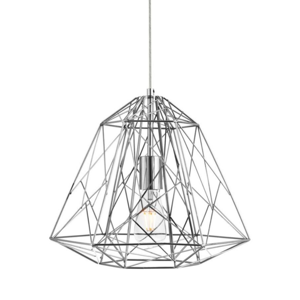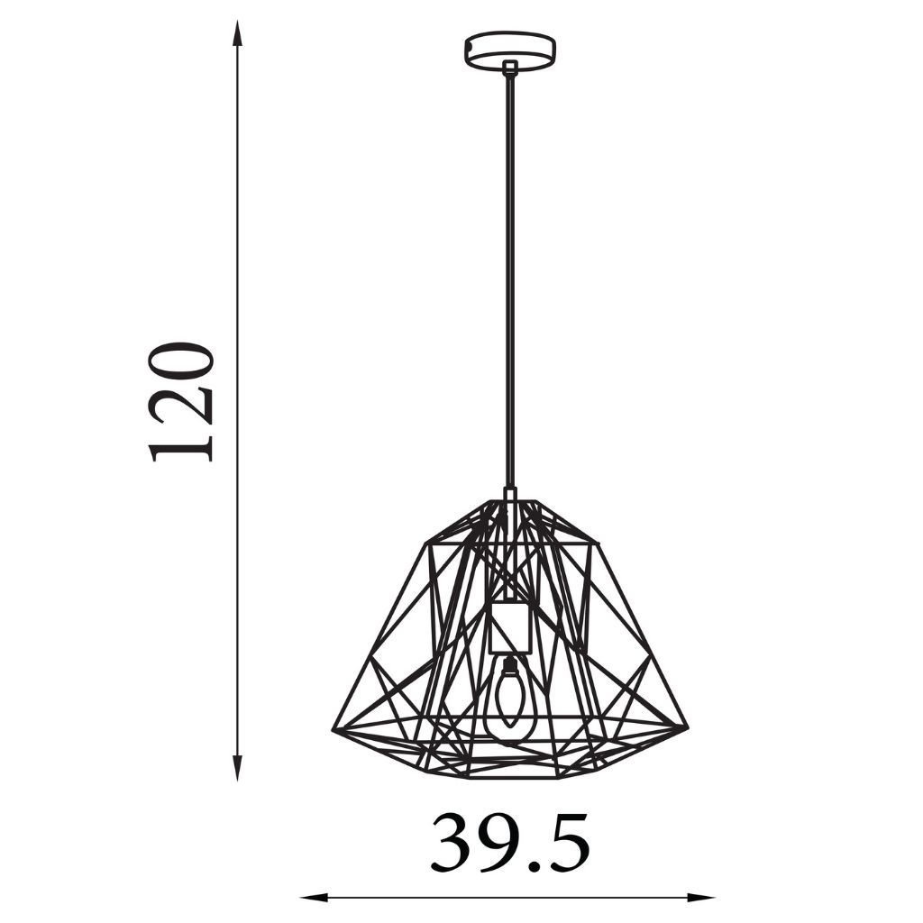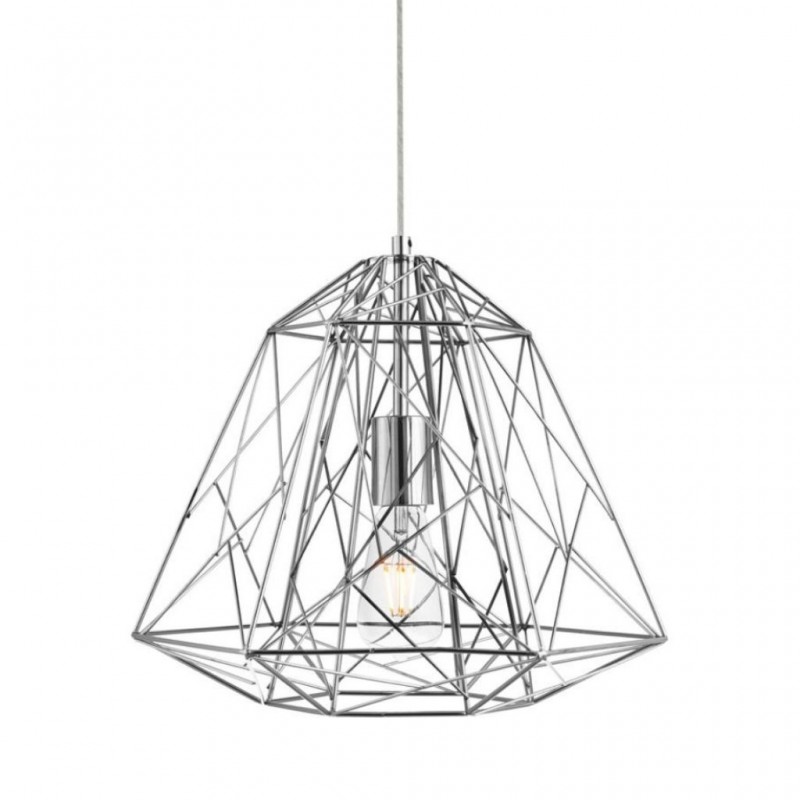 Závěsné svítidlo je v drátěném stylu, vyrobené z kovu s povrchovým zpracováním lesklé stříbrné. Výška svítidla je 1500 mm, šířka 390 mm, délka závěsu je nastavitelná . Osazeno jednou paticí typu E27 s maximálním příkonem 1 × 60 W. Svítidlo je stmívatelné, světelný zdroj není součástí balení. Vhodné pro jídelnu a další prostory. |