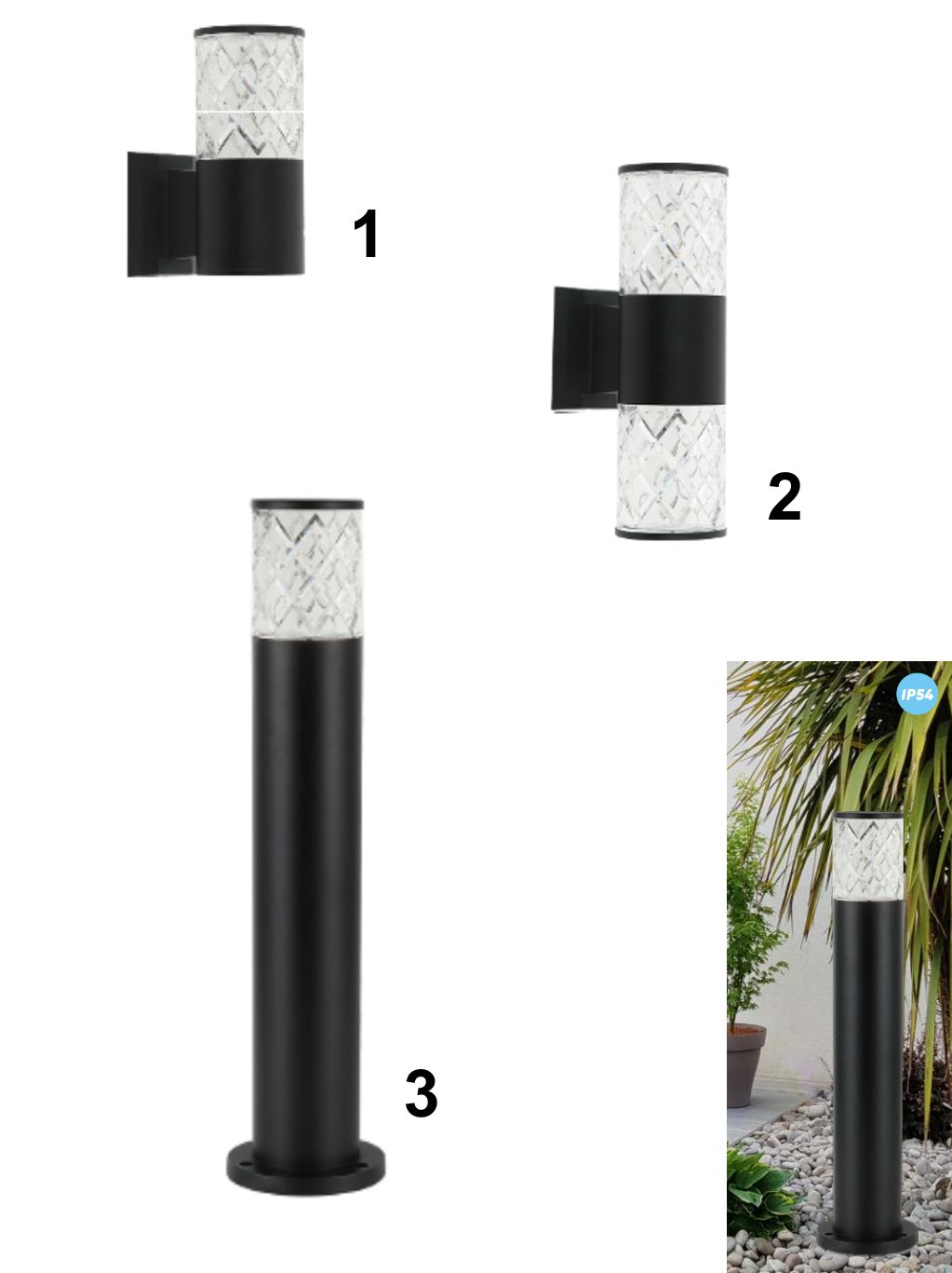 Moderní svítidla do zahrady s klasickým závitem E27. Jsou vyrobena z hliníku a polykarbonátu. Kombinace černé barvy základny a čirého difusoru působí elegantním dojmem. |