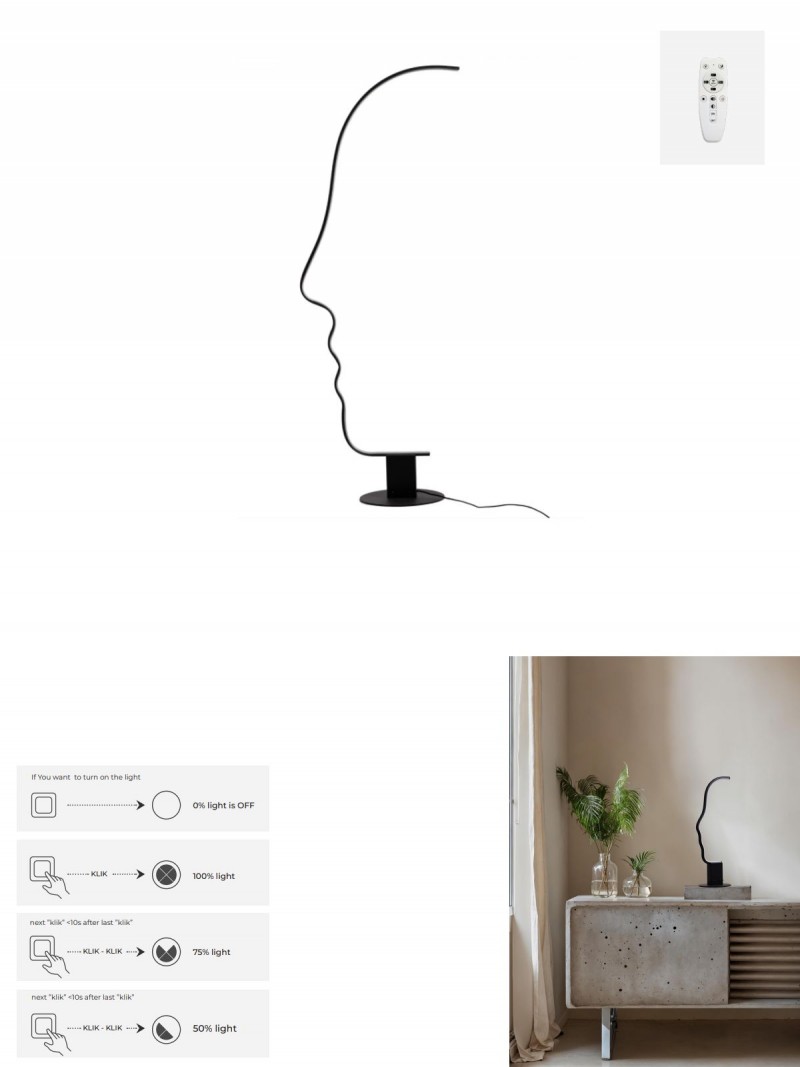 Moderní lampa Face table CCT je vyrobena z hliníku a silikonového stínidla. Dodává se včetně dálkového ovladače, kterým lze svítidlo pohodlně ovládat. Lampička má také přepínač CCT, kterým lze nastavit stmívání. Prvním proklikem 100% svícení, druhým proklikem 75% svícení, třetím proklikem 50% svícení. Nastavení teploty svícení na 3000K/4000K nebo 6500K. |