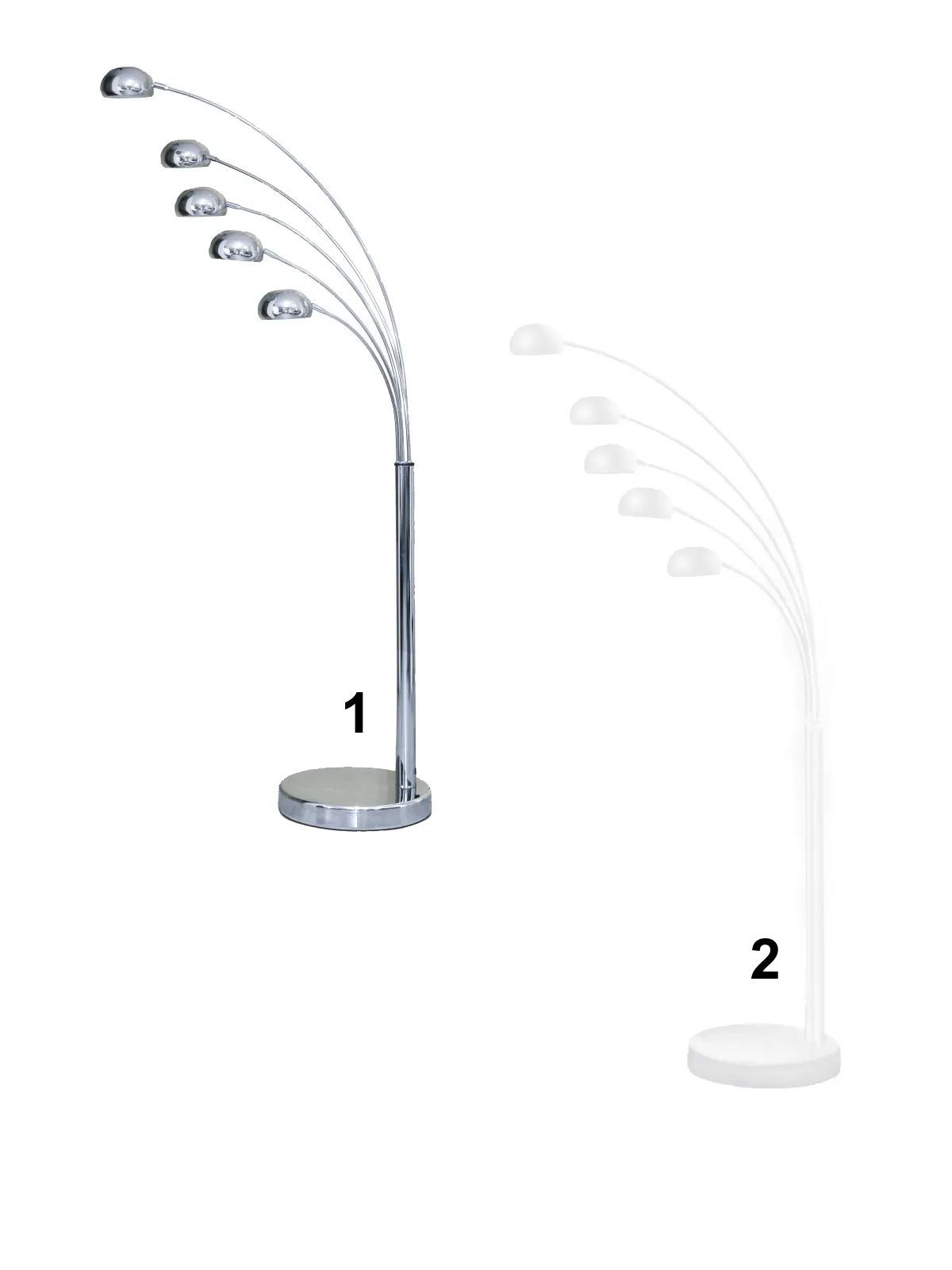 Tato lampa s pěti ramery vystřelujících do prostoru bude zajímavým prvkem do vašeho moderního interiéru. Je vyrobena z kovu s podstavcem z mramoru, který zajišťuje její stabilitu. Vyrábí se ve dvou barevných variantách - v bílé a chromové barvě. Se závitem E14. Žárovky nejsou součástí svítidla a je nutné je dokoupit zvlášť. |
