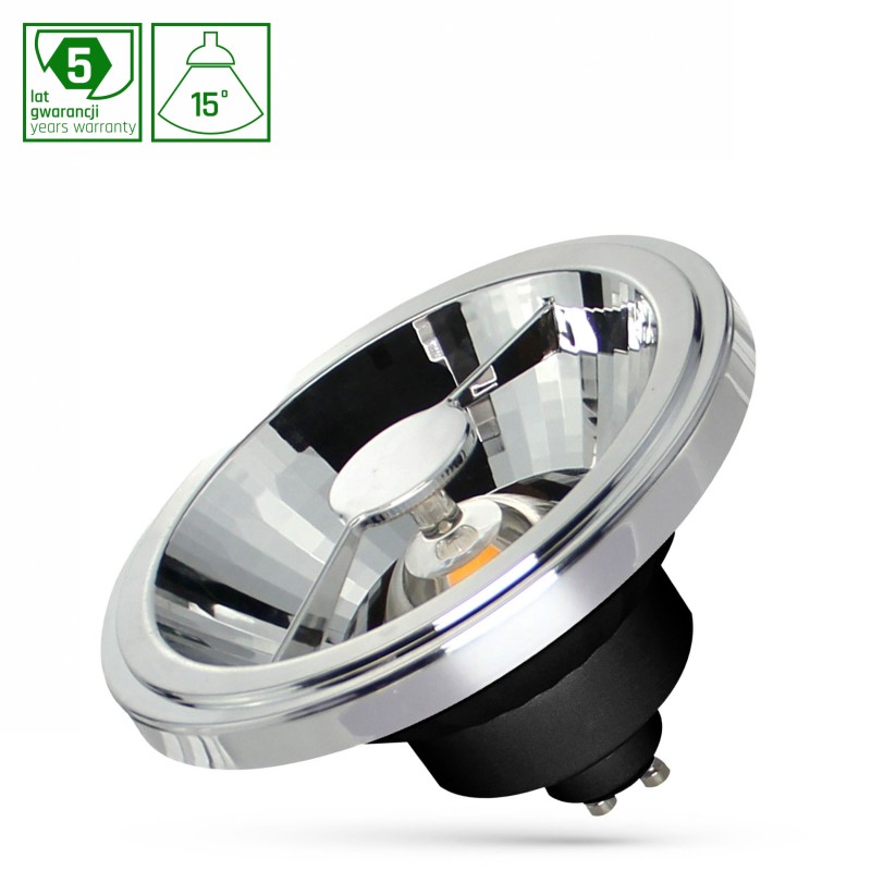 LED AR111 GU10 230V 12W COB 15DEG WW BLACK SPECTRUM 5Y WARRANTY - Žárovky Spectrum