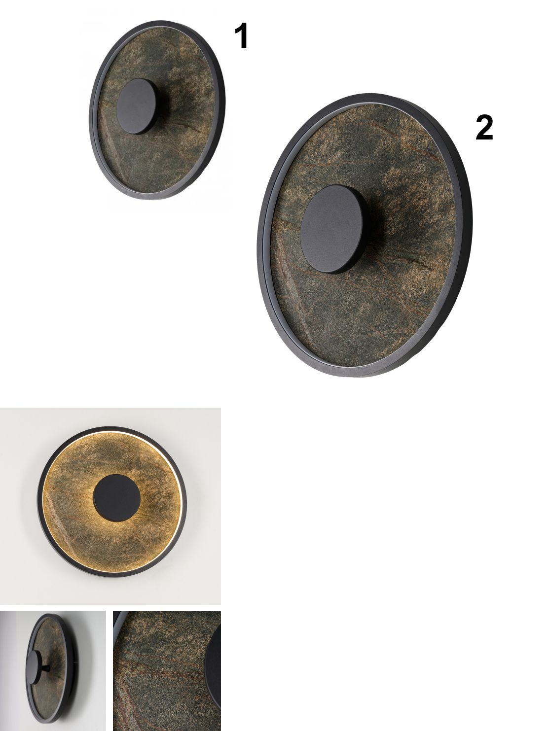 Stylová nástěnná svítidla vyrobená z hliníku, kamene a silikonu. Svítí teplou bílou barvou. LED zdroj je zabudovaný a není možné ho měnit. |