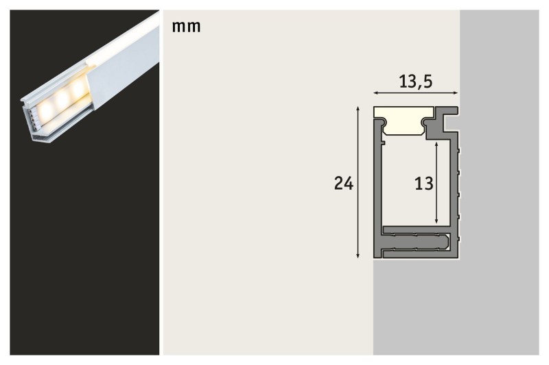 LumiTiles LED Strip přisazený profil Top 1m hliník eloxovaný/satén - PAULMANN - Hliníkové LED profily