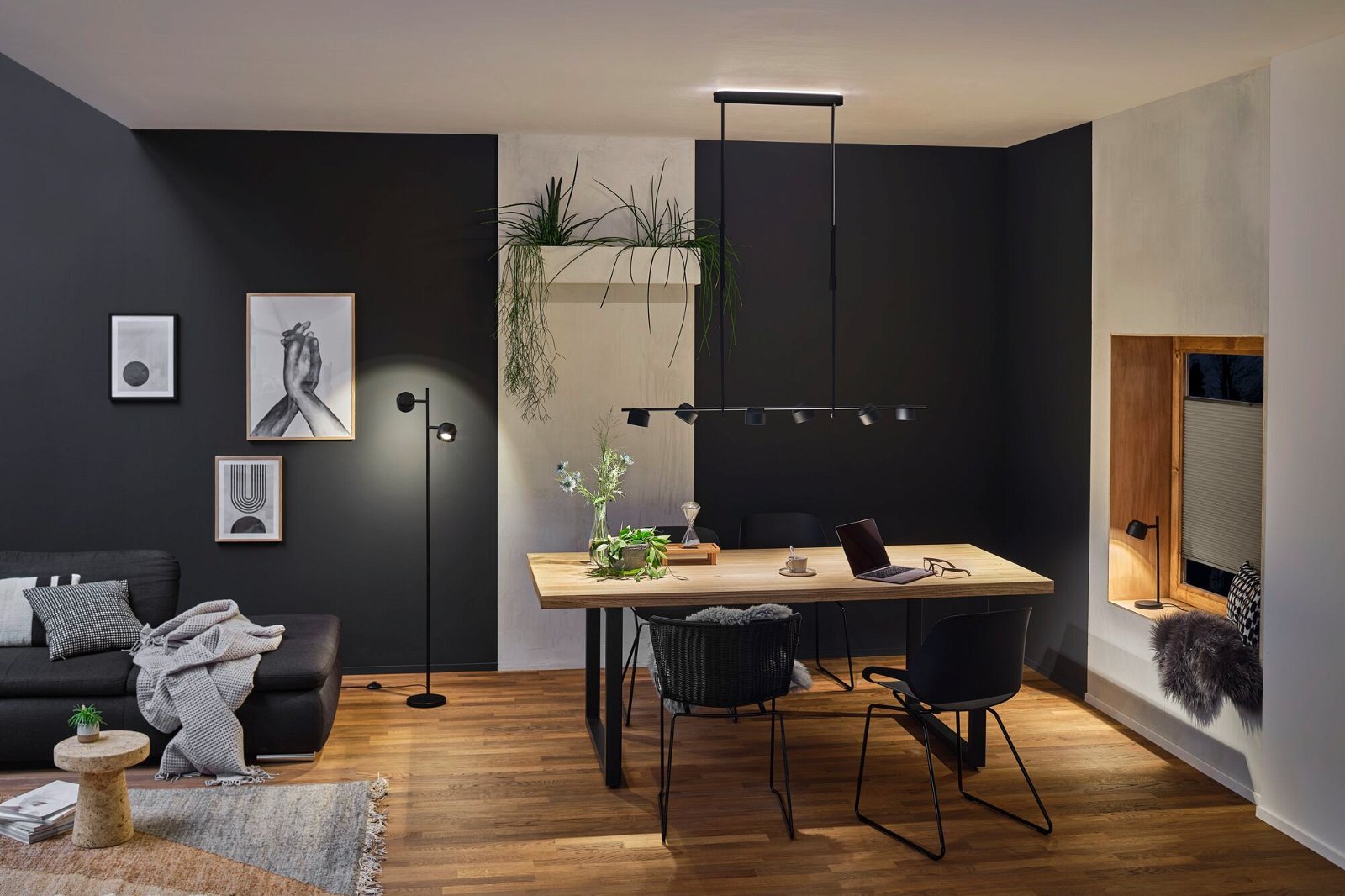 LED závěsné svítidlo 3-krokové-stmívatelné Puric Pane Effect 6x6,5 / 1x4,5W černá - PAULMANN - Moderní svítidla
