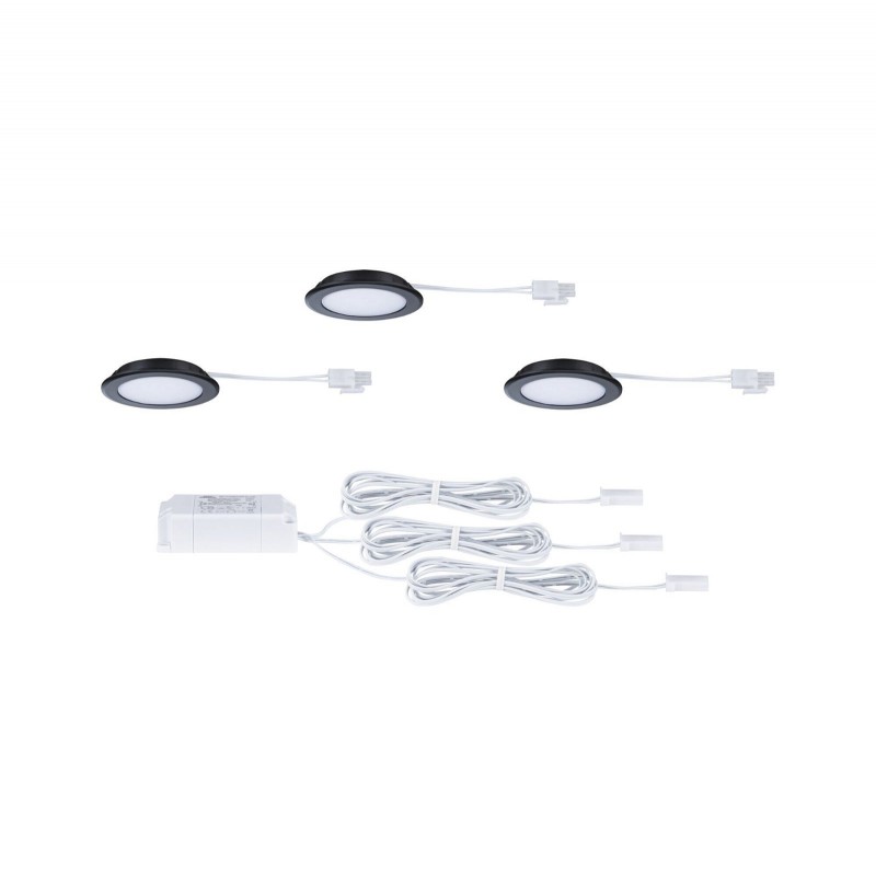 LED vestavná nábytková svítidla 3ks sada kruhové 65mm 3x2,5W 230/12V 4000K černá mat - PAULMANN - Nábytková svítidla