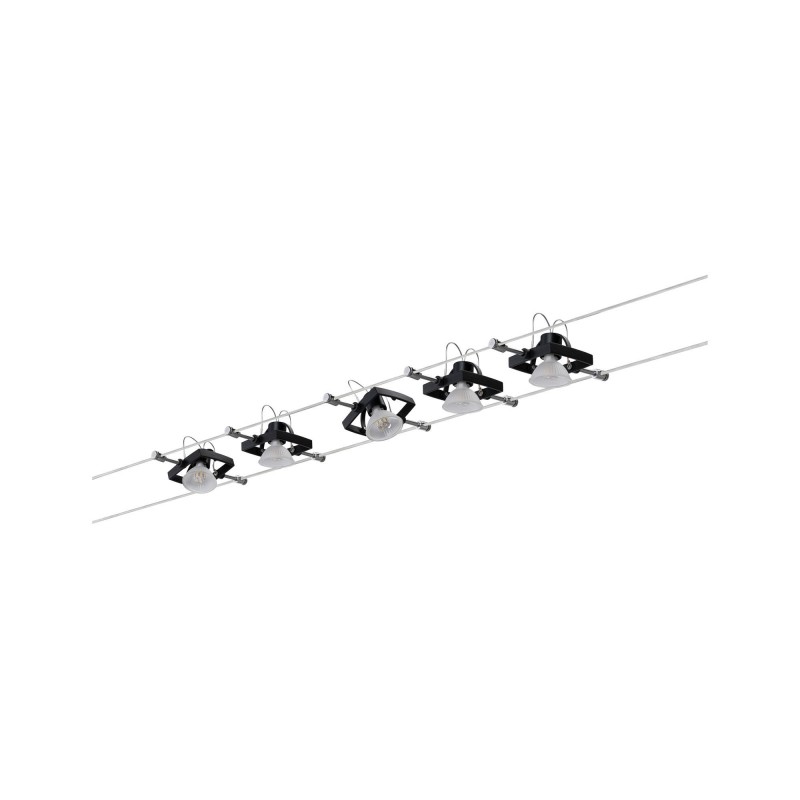 Lankový systém Mac II černá mat 5 spotů bez zdroje světla, max. 10W GU5,3 - PAULMANN - Lanková svítidla