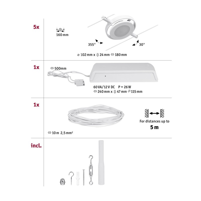 LED lankový systém RoaMac základní sada 5x4,5W 3000K 230/12V bílá/chrom - PAULMANN - Lanková svítidla