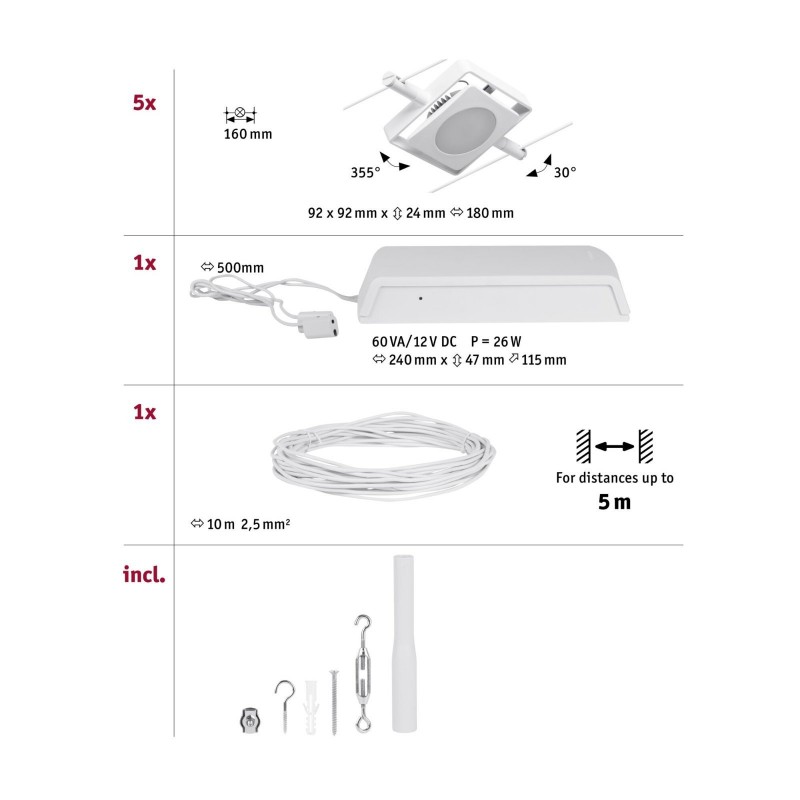 LED lankový systém MacLED základní sada 5x4,5W 3000K 230/12V bílá/chrom - PAULMANN - Lanková svítidla