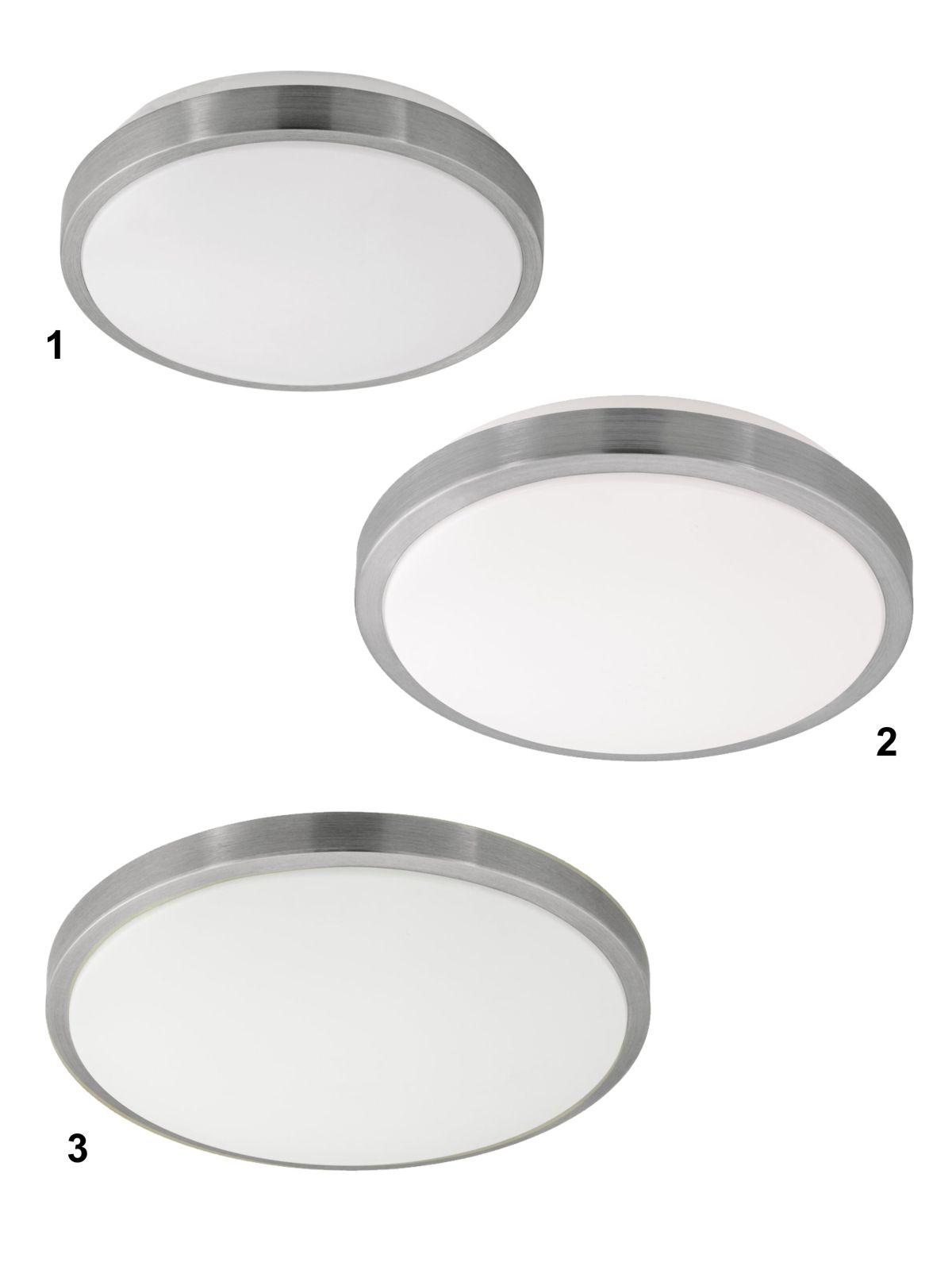 Kulatá stropní LED svítidla vhodná do všech obytných místností jako jsou obývací pokoje, pracovny, chodby a předsíně. Svítí teplou bílou barvou. Není možné je stmívat. Jsou vyrobeny z oceli v bílé barvě a z plastu v kombinaci bílé a matného niklu. |