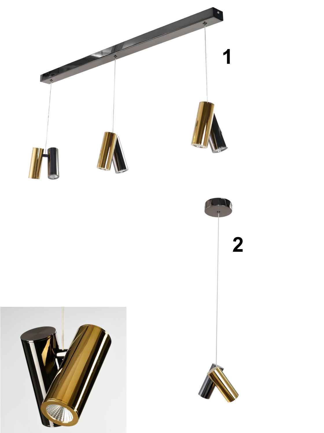 Moderní závěsná svítidla vyrobená z oceli a akrylu v kombinaci černý chrom a zlatá. Elegantní svítidlo do vaší kuchyně, jídelny nebo obývacího pokoji. LED zdroj je zabudovaný a není možné ho měnit. Svítidlo je energeticky nenáročné. Svítí teplou bílou barvou. |