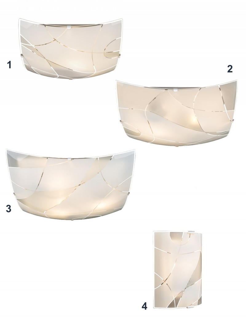 4. GL-40403W2 Nástěnné svítidlo, kov bílý, chrom, satinované sklo, ozdobné linky, Dx?: 22x23cm, H:7cm, bez žárovky 1xE27, max. 60W 230V ILLU. detail výrobku