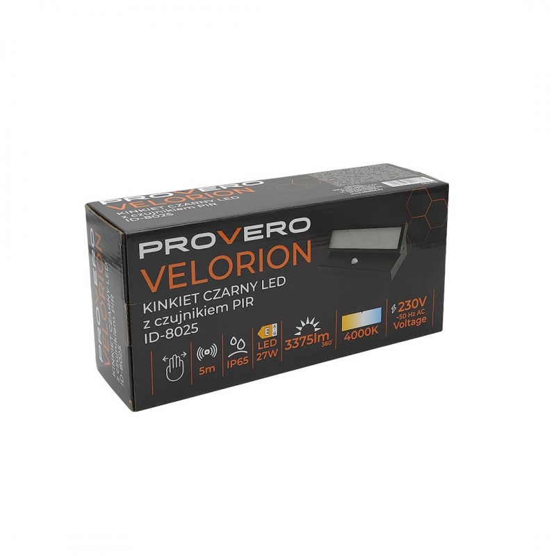 Kinkiet Velorion 27W czarny 4000K regulowany PIR - Zahradní svítidla