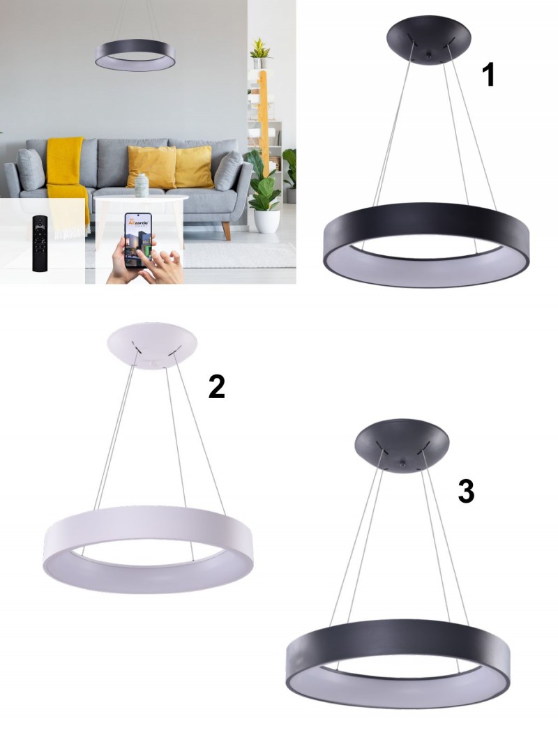 Závěsné smart svítidlo vyrobené z hliníku a plastu. Je možné ho ovládat buď dálkovým ovladačem nebo chytrým telefonem přes aplikaci. Svítidlo je stmívatelné, je možné nastavit teplotu barvy svícení. |