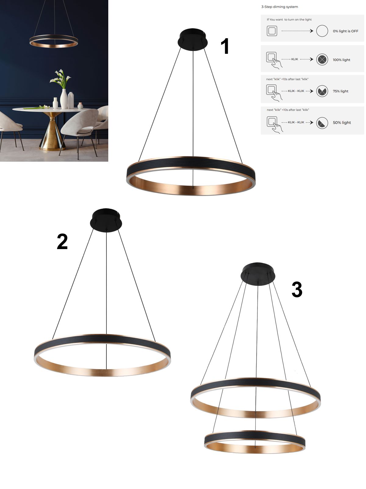 Designové závěsné svítidlo vyrobené z hliníku a silikonu. Svítí teplou bílou barvou a je možné ho stmívat vypínačem na zdi. |