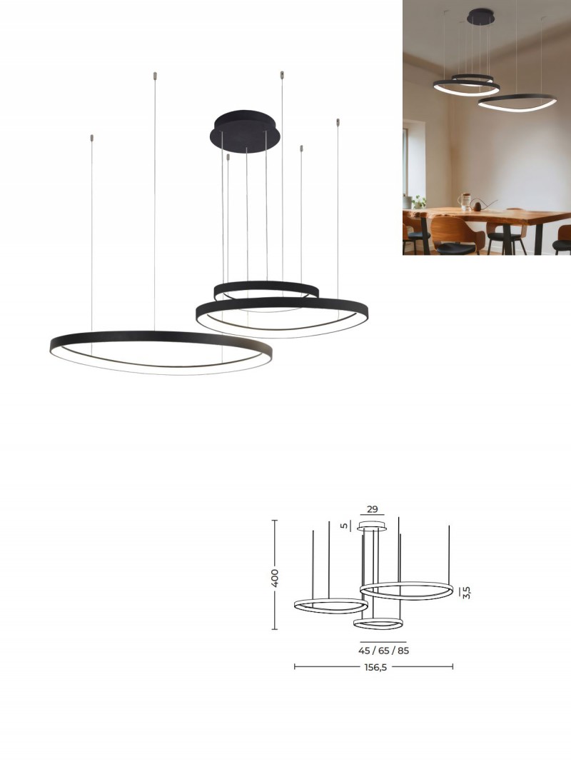 Svítidlo Amanda pendant je vyrobeno z hliníku s plastovým stínidlem. Skvěle se hodí do obývacích pokojů. Svítidlo je zavěšeno na ocelových lankách, které je možné podle potřeby zkrátit. Je vhodné k nasvícení větších obytných prostor. Svítí teplou bílou barvou, což v interiéru navozuje příjemnou atmosféru. |