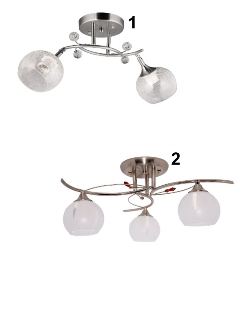 Tato stropní bodová svítidla jsou vyrobena z kovu v barvě matný nikl a ze skla v čiré barvě. Závit E27. Žárovky nejsou součástí svítidla a je nutné je dokoupit zvlášť. |