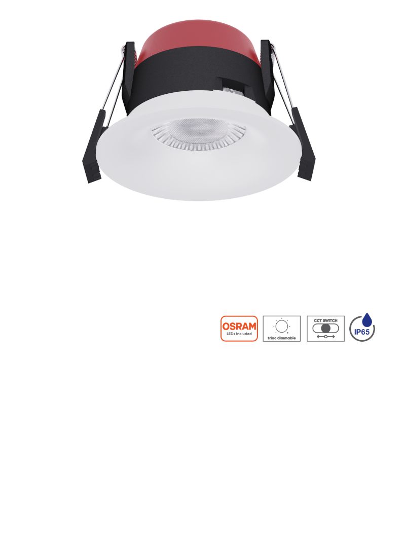 Vestavné bodové svítidlo Axt je vyrobeno z hliníku ve stříbrné barvě a z plastu v matné bílé barvě. Je možné nastavit teplotu svícení na 2700K-6500K CCT přepínačem na svítidle. Díky ochraně IP65 je vhodné také do vlhkých prostor jako je koupelna nebo WC nebo také balkon či terasa. Je stmívatelné. LED zdroj OSRAM je zabudovaný. |