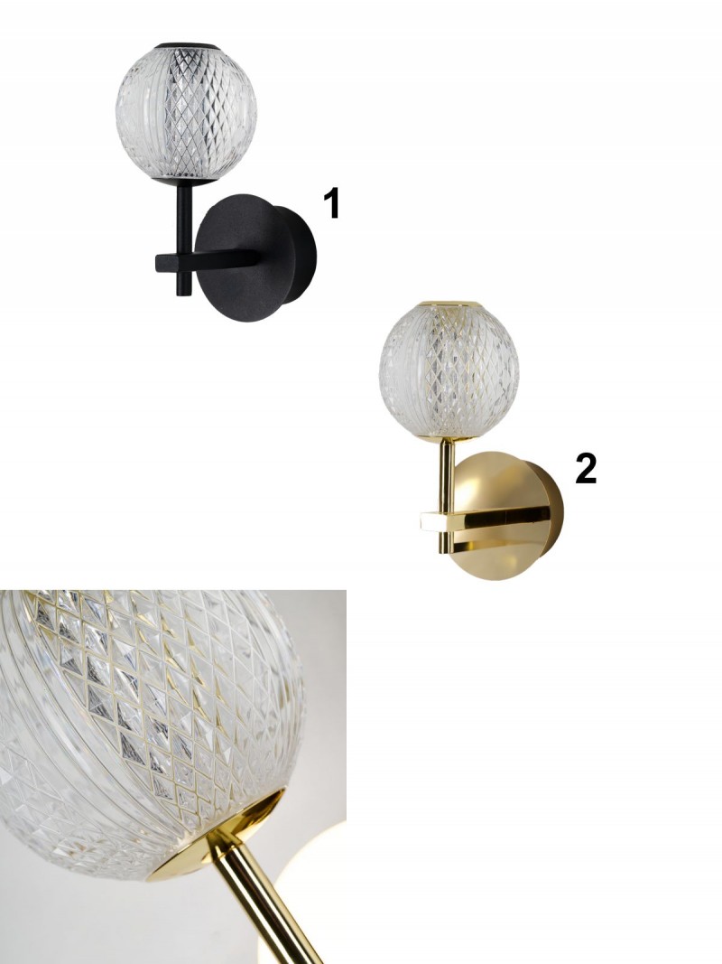 Nástěnná svítidla vyrobená z hliníku a akrylu. LED zdroj je zabudovaný a není možné ho měnit. Svítí teplou bílou barvou. |