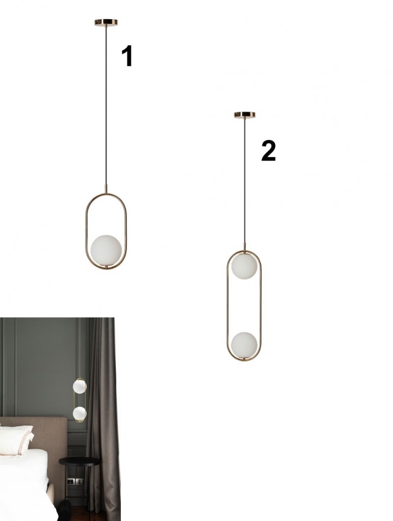Zajímavé lustry vyrobené z hliníku ve zlaté barvě a skleněných bílých stínidel ve tvaru koule. Se závitem G9. Svítidla se dodávají bez žárovek. |