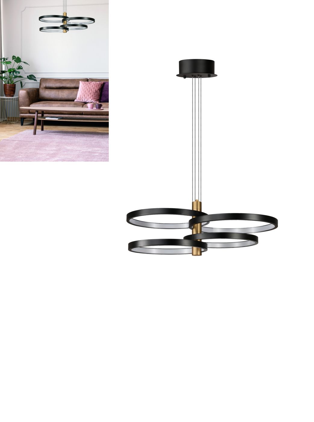 Designové závěsné LED svítidlo vyrobené z hliníku a PVC. Hliníková základna v kombinaci barev černé a zlaté působí v interiéru velmi elegantním dojmem. Skvěle se hodí do obývacích pokojů, kuchyní i ložnic. LED zdroj je zabudovaný a nenní možné ho měnit. Svítidlo je energeticky nenáročné. Svítí teplou bílou barvou. |