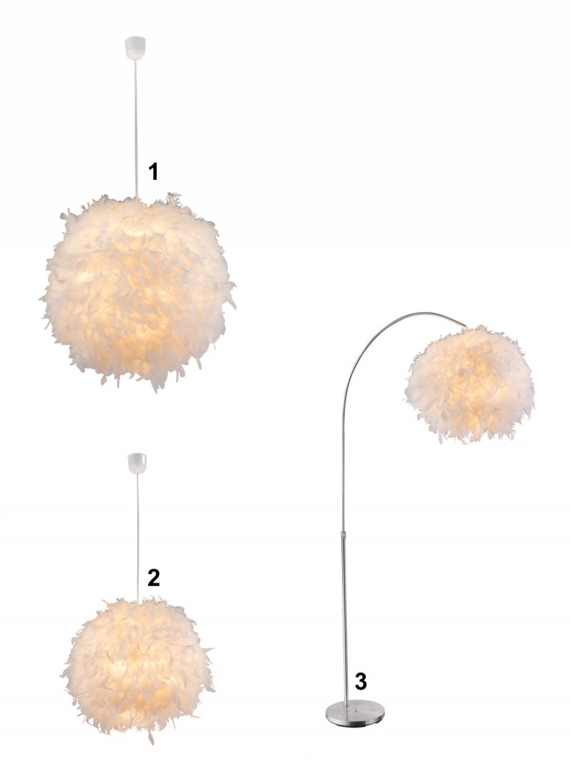 2. GL-15057 Závěsné svítidlo, bílý plast, textil bílý, stínidlo s bílým peřím, včetně zavěšení, Ø45cm, V:120cm, bez žárovky 1xE27, max. 40W 230V. detail výrobku