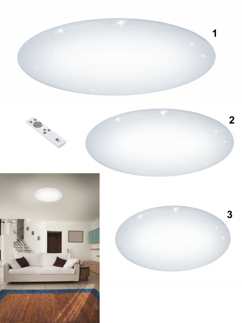 Moderní kulatá svítidla vyrobená z oceli v bílé barvě a z plastu v bílé barvě s třpitivým efektem. Díky tomu se hodí svítidlo krom obývacích pokojů, ložnic a předsíní také do dětského pokoje. Svítidla jsou dodávána včetně dálkového ovladače, s kterým lze svítidlo pohodlně stmívat nebo měnit teplotu svícení. Má také noční světlo. 2 x AAA; Ni-Mh; 300mAh součástí balení |