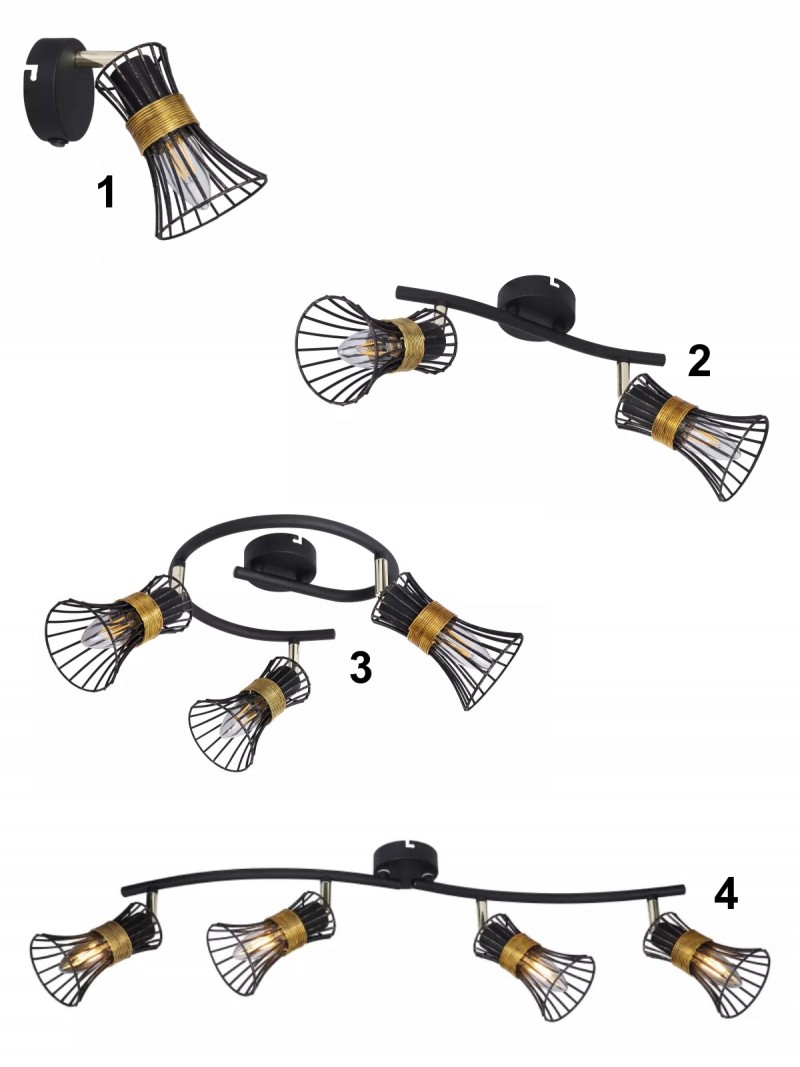 4. GL-54814-4 Stropní svítidlo, kov černý a zlatý, kovové tyče černé a zlaté, pohyblivé, DxV: 70x22cm, bez žárovek 4xE14, max. 40W 230V detail výrobku