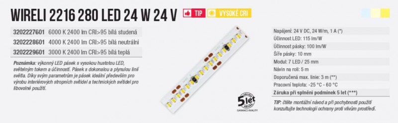 LED pásek 2216 280 WIRELI WN 2400lm 24W 1A 24V (bílá neutrální) - LED pásky