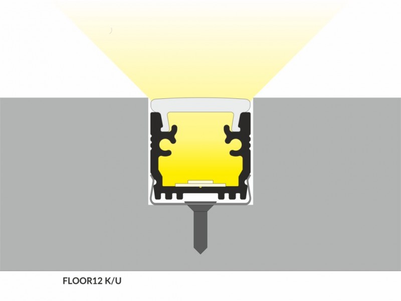 Robustní profil s difuzorem pro světelné linie v podlaze, obkladech nebo jiných drážkách.