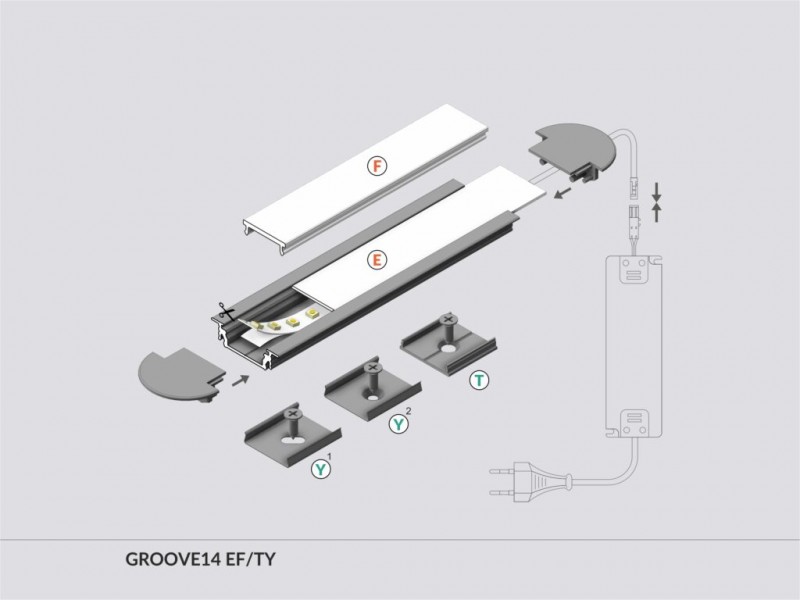 LED profil GROOVE14 umožňuje vložit pásek šíře až 14mm.