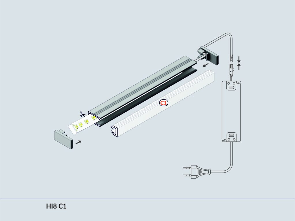 Profil je určen pro nasvícení čelní strany pracovní desky stolu, hran nábytku či schodových stupnic. Vytváří dokonalou linii světla. |
