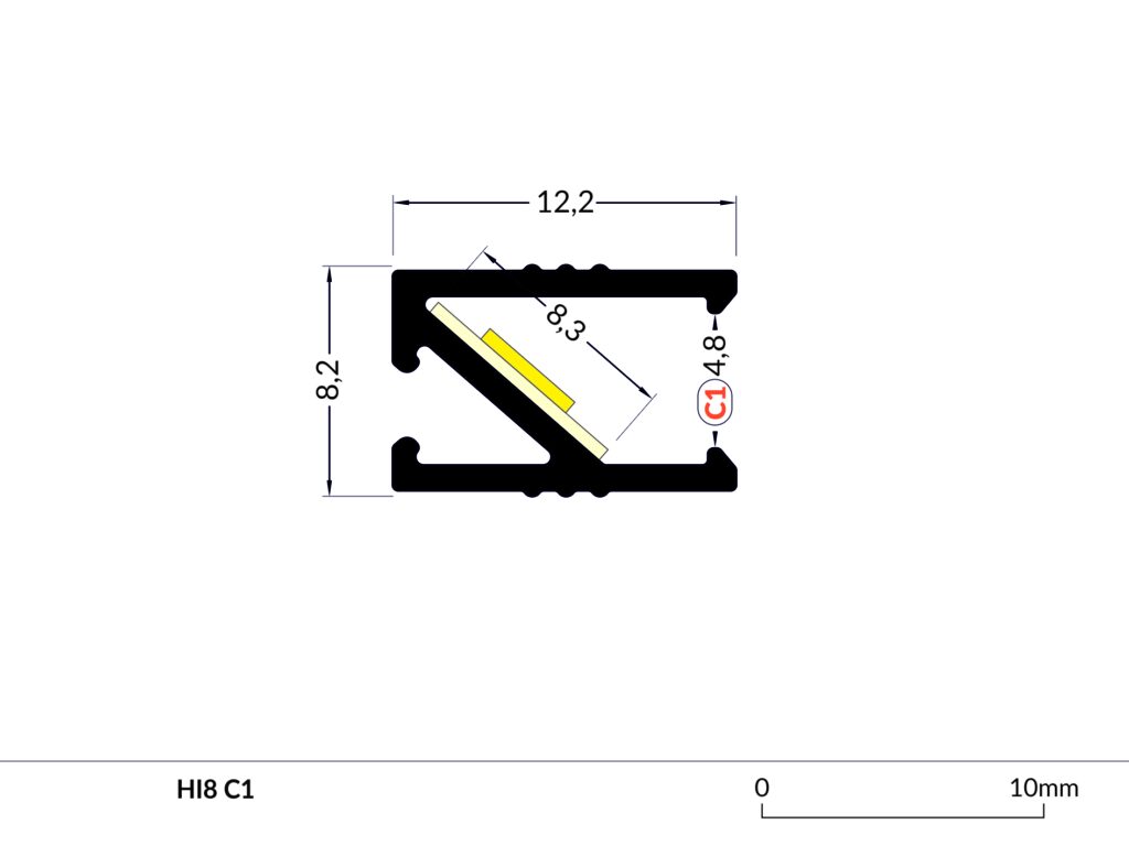 Profil je určen pro nasvícení čelní hrany pracovní desky stolu, hran nábytku či schodových stupnic. Vytváří dokonalou linii světla.