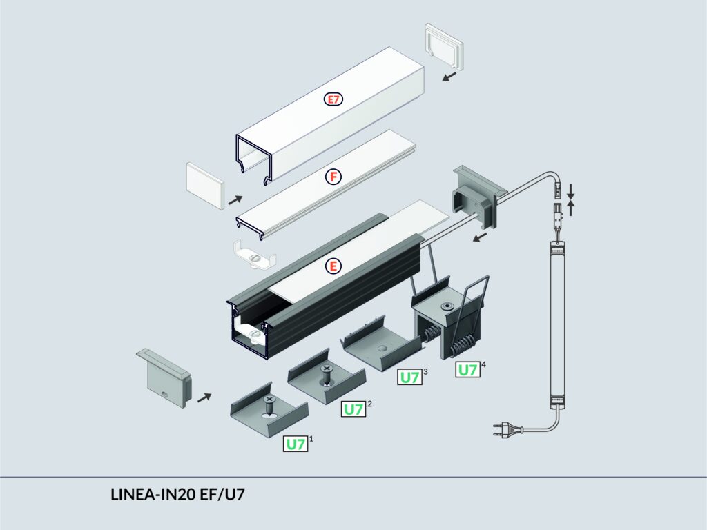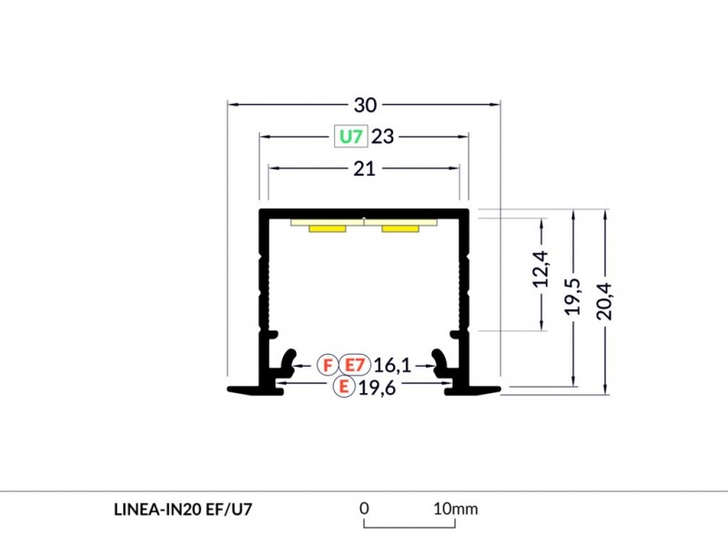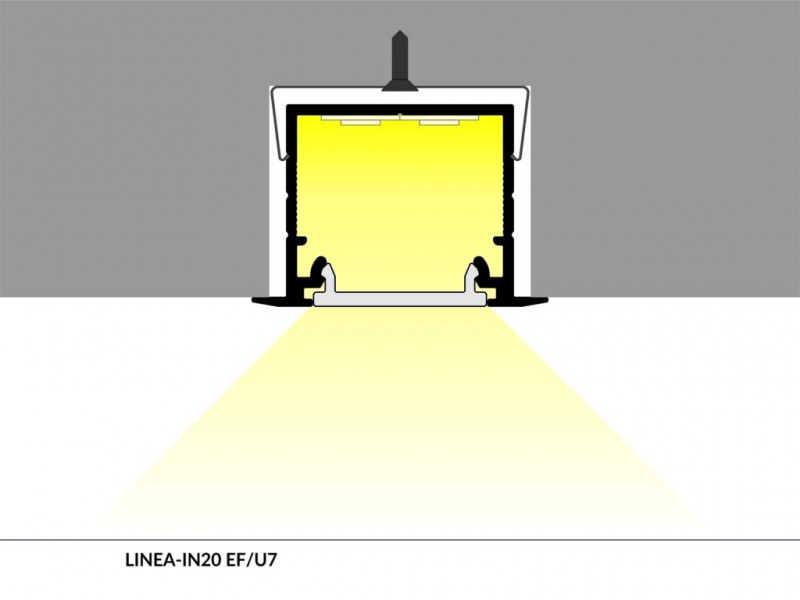 Profil vhodný pro výkonné LED svítidla zapuštěné do stropů a stěn. S tímto profilem dosáhnete plynulé linie světla bez viditelných bodů jednotlivých LED.