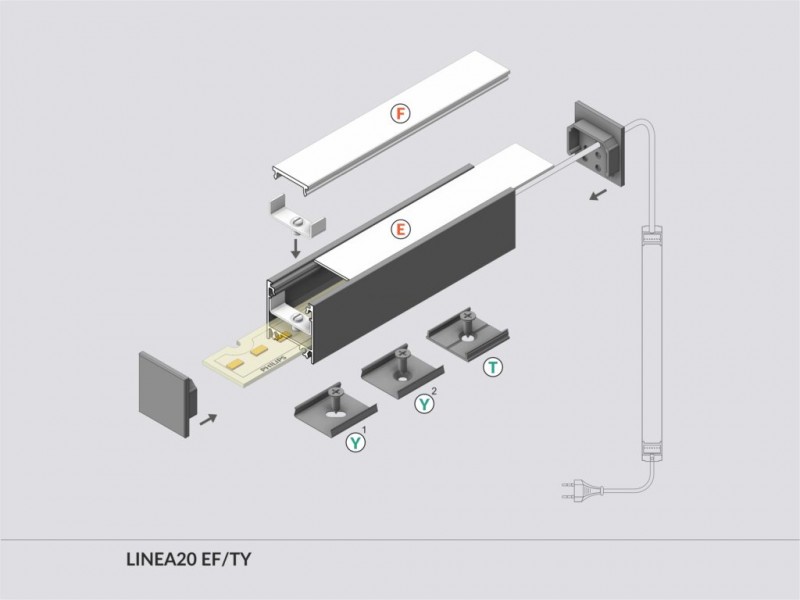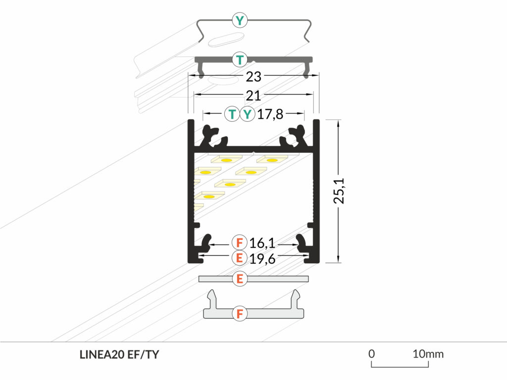 Profil WIRELI LINEA20 EF/TY hliník surový, 2m (metráž) - Hliníkové LED profily