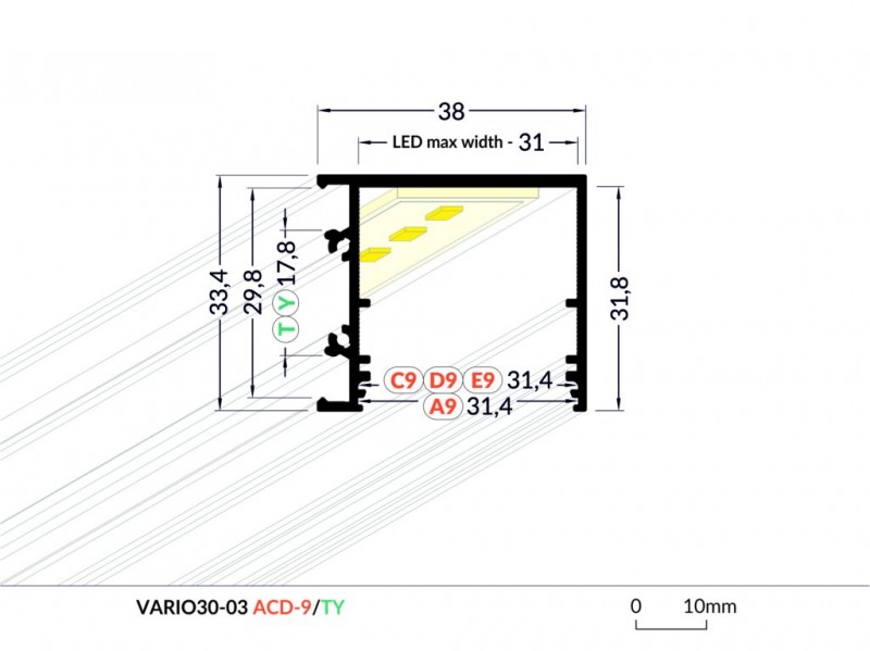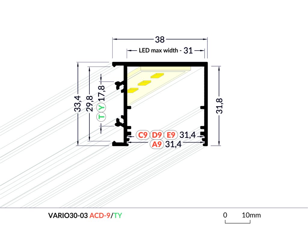 Profil WIRELI VARIO30-03 hlíník surový, 2m (metráž) - Hliníkové LED profily