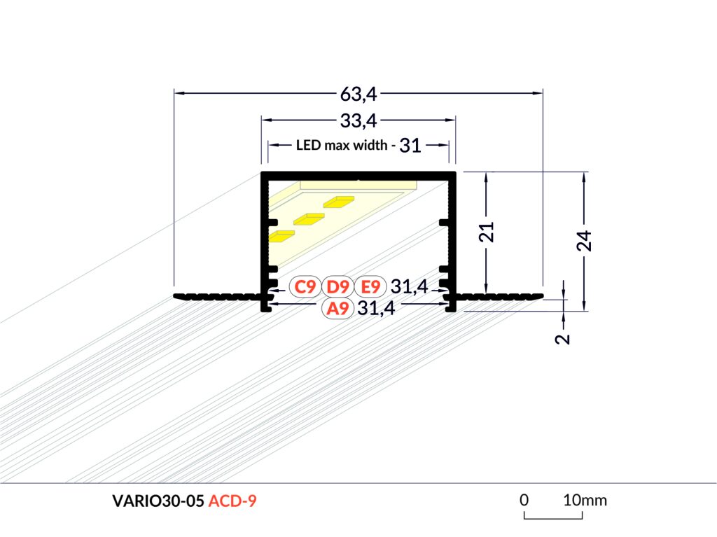 Profil WIRELI VARIO30-05 hlíník surový 2m (metráž) - Hliníkové LED profily