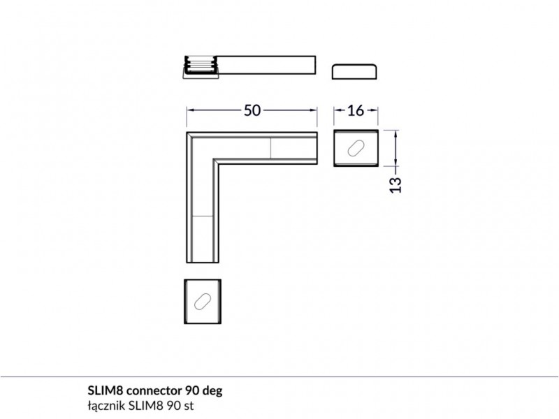 Spojka rohová WIRELI SLIM8 - 90° hliník anoda, ks - Hliníkové LED profily