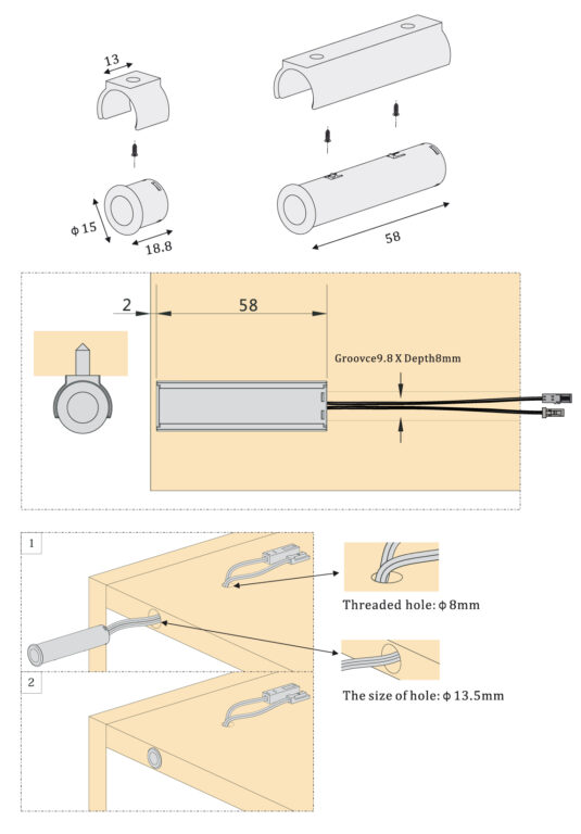 Délka kabelů :1m (otvor pro kabel o8 mm)