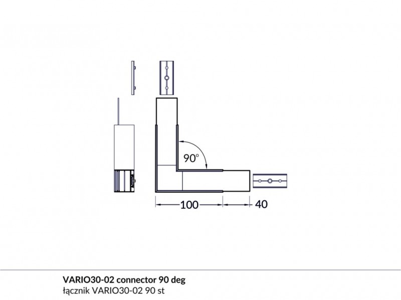 Spojka rohová WIRELI VARIO30-02 - 90° hliník anoda, ks - Hliníkové LED profily