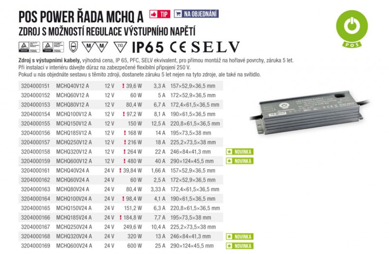 Zdroj napětí 24V 80W 3,33A IP65 POS POWER typ MCHQ80V24 A - Napájecí LED zdroje - LED trafo