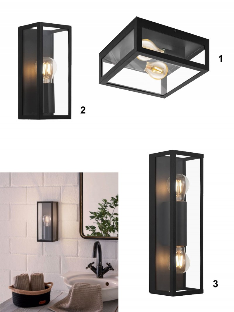 Velmi pěkná, stylová svítidla do koupelny vyrobená z oceli v černé barvě a ze skla v čiré barvě. Lze je osadit chytrou LED žárovkou a měnit tak intenzitu a teplotu chromatičnosti svícení. |