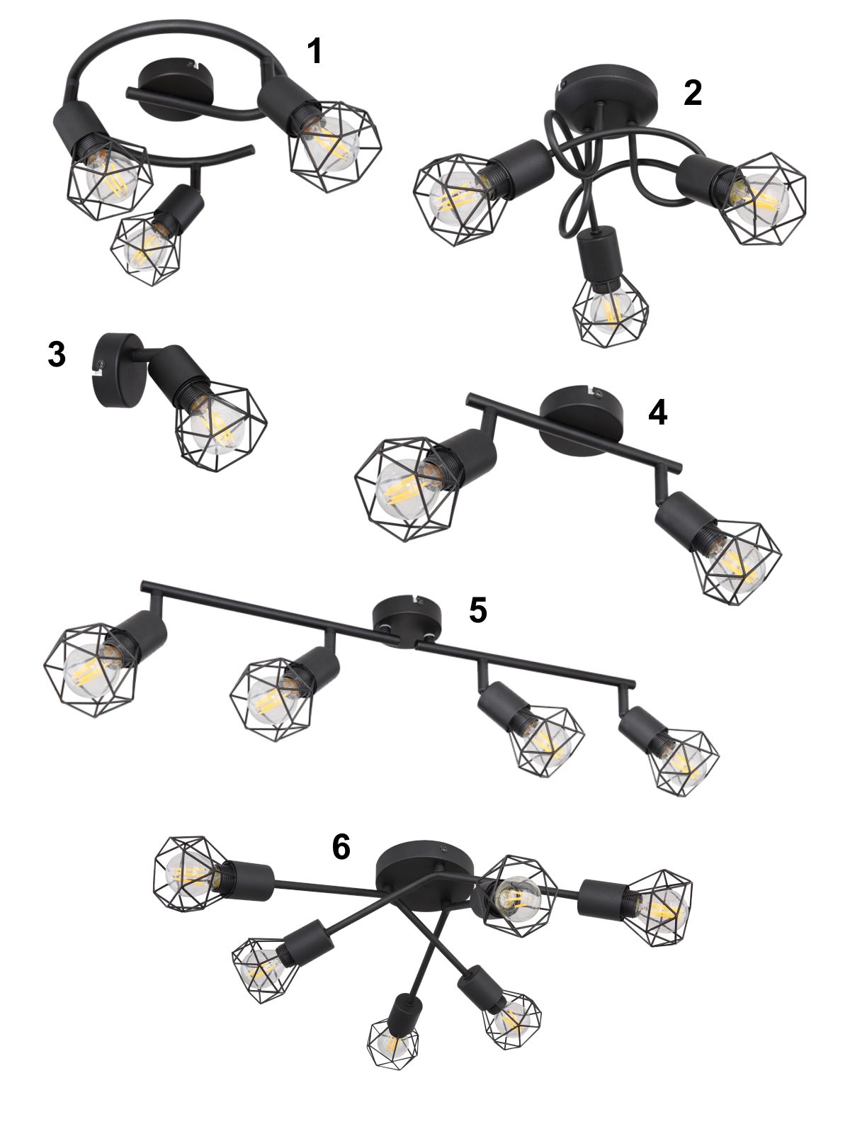2. GL-54802S-3D Stropní svítidlo, černý kov, Ø36cm, V:20cm, bez žárovek 3xE14, max. 40W 230V detail výrobku